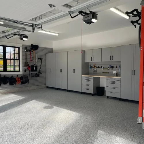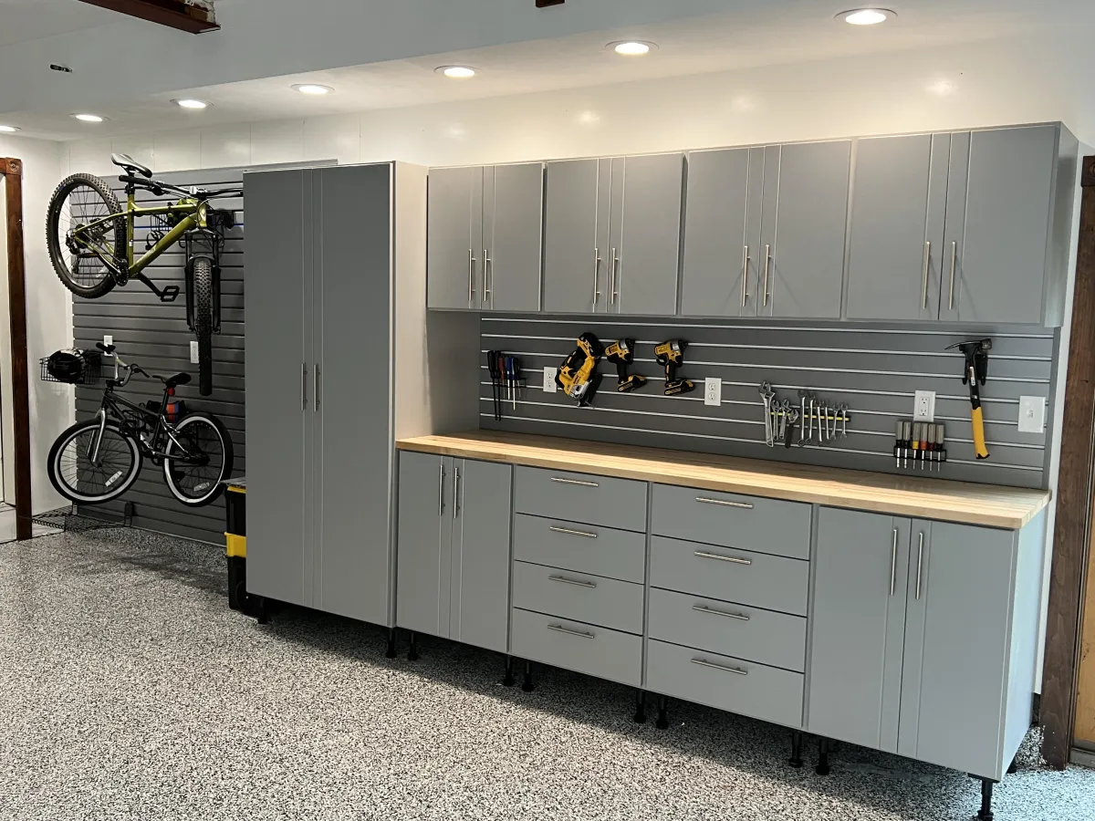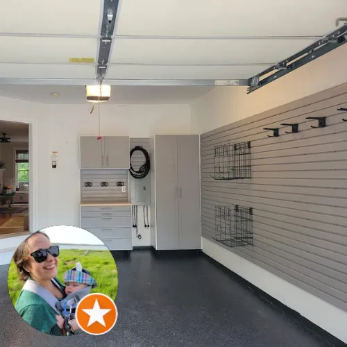 We are so pleased with our storage and epoxy floor. Cabinets are sturdy with a good feel of quality. Ryan’s (Garage Pro owner) design ideas were well thought out and he was so easy to work with and get ahold of which is always important to us. The slat wall is very versatile.