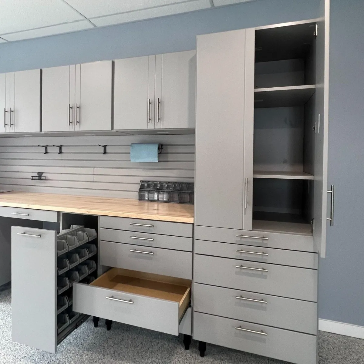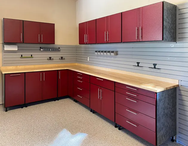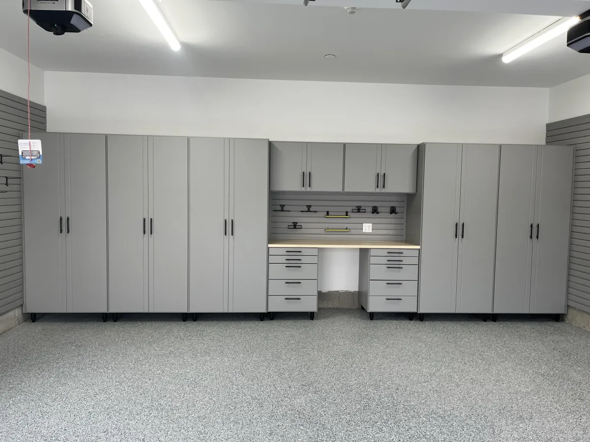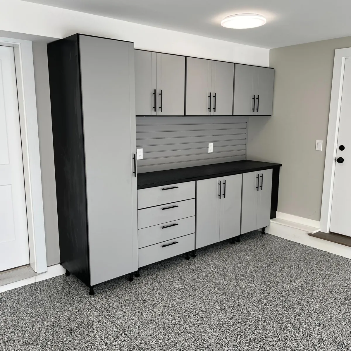We are so pleased with our storage and epoxy floor. Cabinets are sturdy with a good feel of quality. Ryan’s (Garage Pro owner) design ideas were well thought out and he was so easy to work with and get ahold of which is always important to us. The slat wall is very versatile.